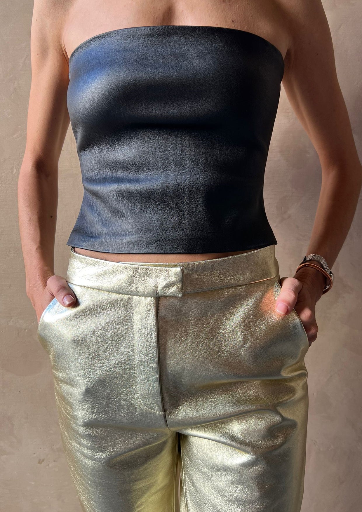 3 POCKET METALIC STRAIGHT PANTS